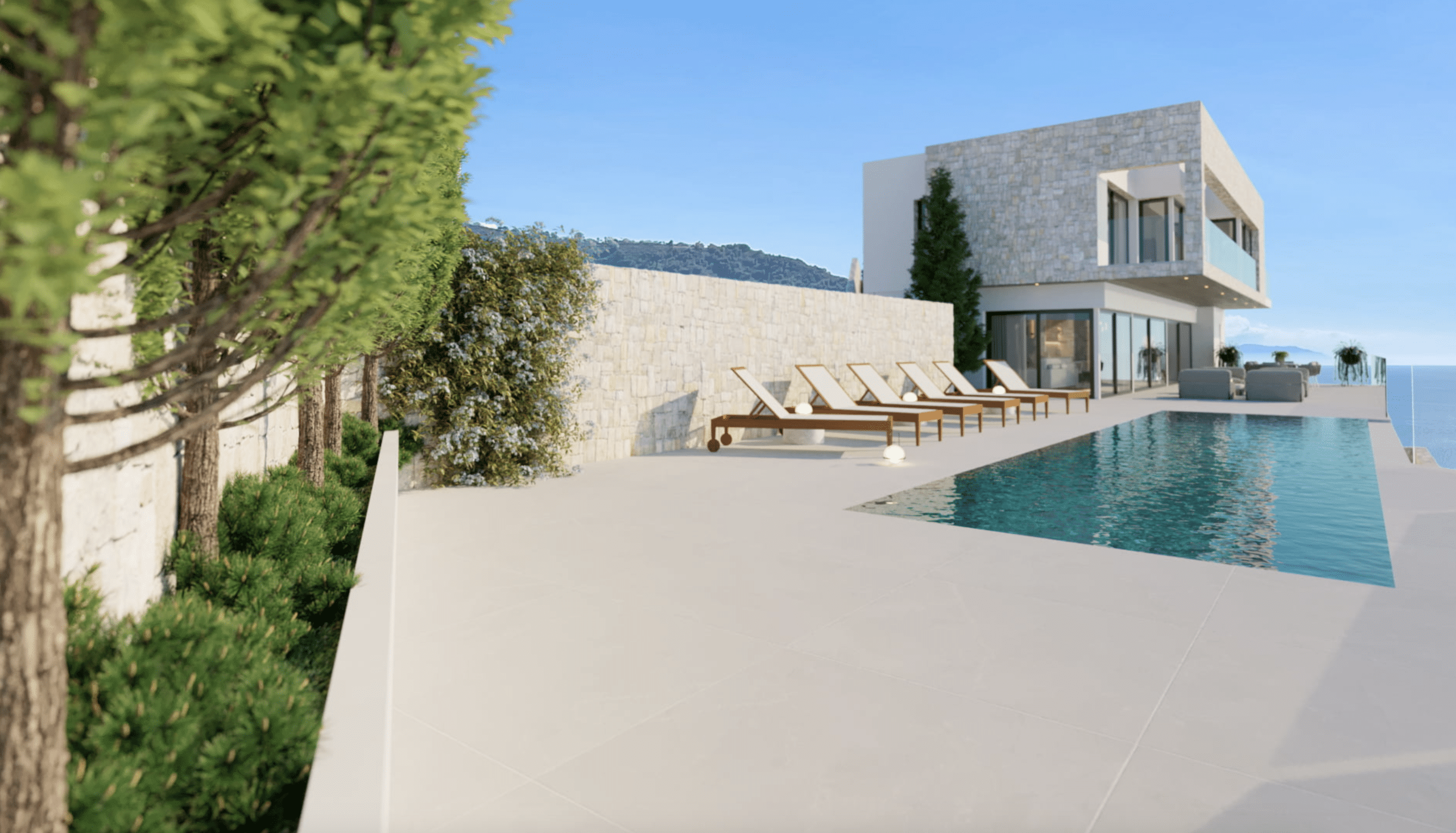 32 luxe villa’s met grote terrassen, overloopzwembad met overgoten met lichtinval zowel in buiten- als in binnenruimtes die in elkaar overvloeien.