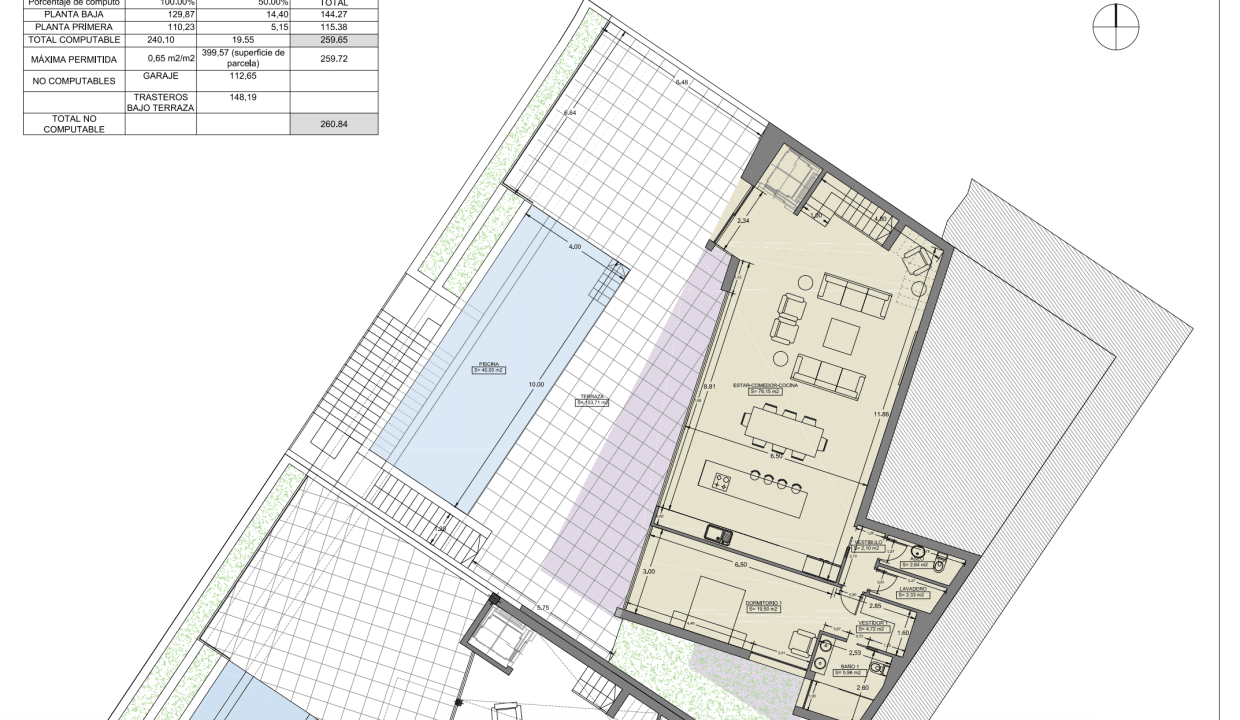 4 slaapkamers, 5 badkamers, garage, tussen 300m2 – 400m2 volgens het model.